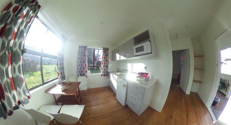 Private and quiet, constructed from recycled timber with a large deck and wooden floors. The kitchen has a microwave, bar fridge, one cook top element, kettle and toaster plus an electric frying pan. Basic cutlery and crockery for 3 are provided.
